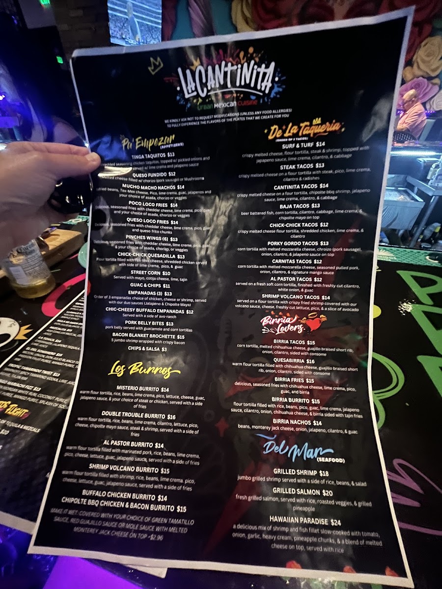 Accompanied by friendly service and a vibrant ambiance enhanced by live music, La Cantinita is more than just a restaurant—it's a dining experience filled with community spirit and flavor. Whether you're stopping by after shopping or looking for a night out, this spot is a must-visit!